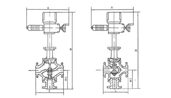电动三通调节阀 主要外形尺寸